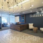 Baltimore Magazine, covering everything in the Baltimore area, was looking for a new refreshed office look providing various types of working environments for their creative and business departments. Spry Design took this opportunity to play up the city that this magazine works in and loves. From their lobby speaking to their past including a custom wall covering showcasing decades of their previous covers, the main conference room took cues from the harbor with wave shaped lighting and rustic wood table reminiscent of the docks, and other areas inspired by the Orioles, Ravens, Pimlico race track and the Baltimore Hon, the office is creative and envelopes who Baltimore Magazine is.