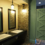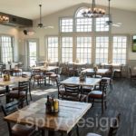 Named after the race horse Challedon, this golf course clubhouse needed to be updated and include an expanded kitchen for their new prized chef. The design took the idea of race horses and stables to produce a refined but comfortable look and feel. The bar design incorporated actual horse shoes from Maryland race horses as purse hooks.
