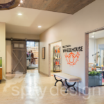 Designed and renovated while at Streetsense, this amenity area was created to embrace the Wheelhouse brand.  Their logo was incorporated into the design, including custom light fixtures.  It was also the genesis of the rustic look that completes the story of what this property is.